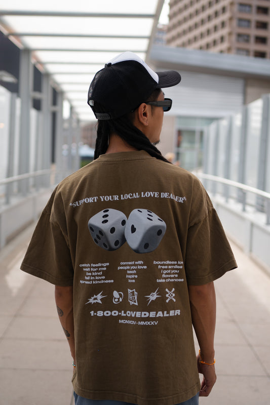 OVERSIZED "LOVE DEALER" T-Shirt (Olive)